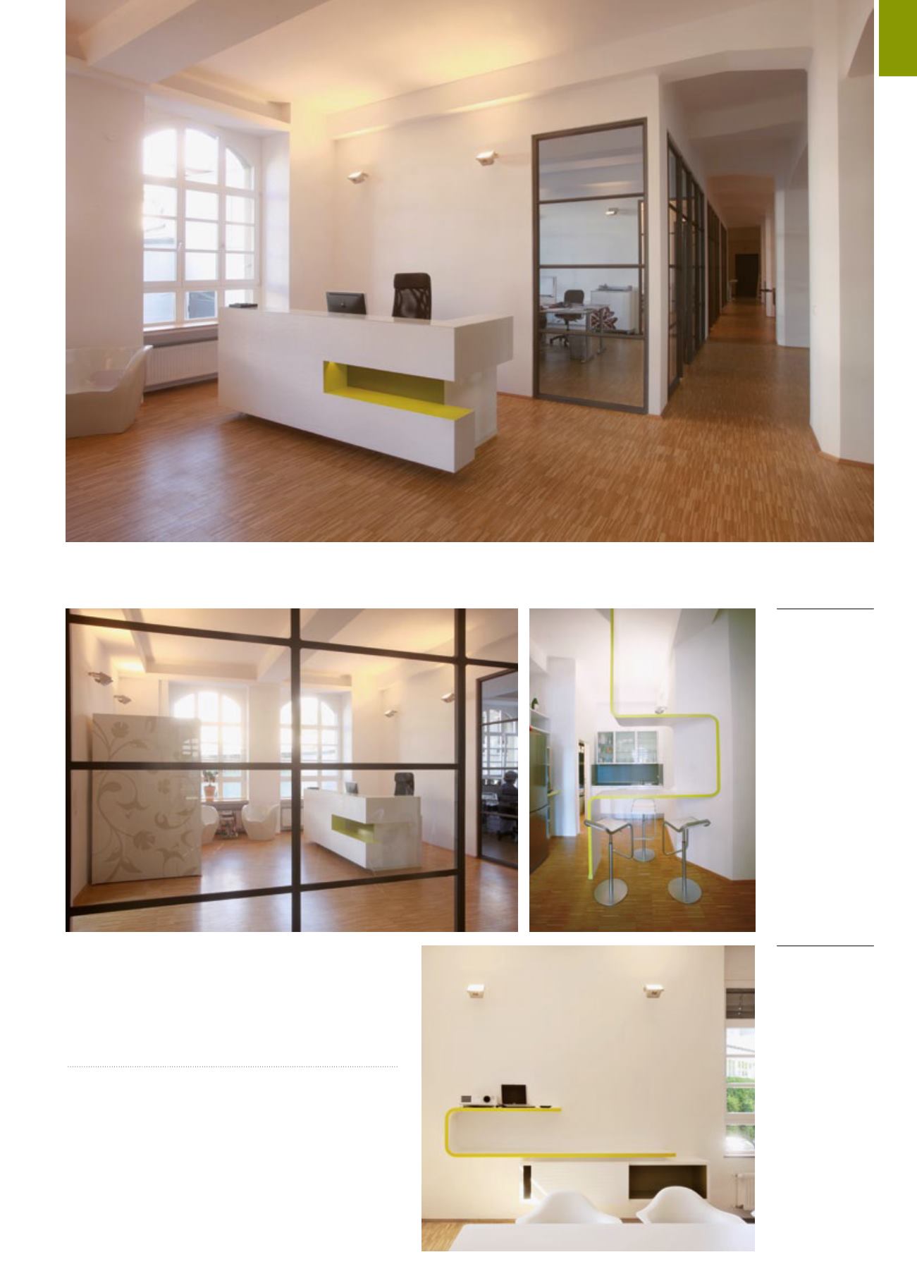 tung ausgestattet. Das feine Riemchenparkett mildert die geometrische Strenge des Raumes.