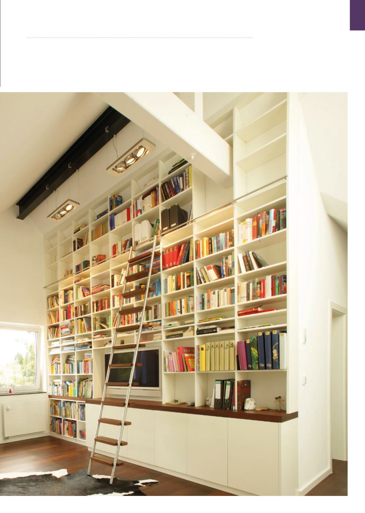 modernen Linienführung eine gelungene Symbiose ein und lässt eine helle Bibliothek
